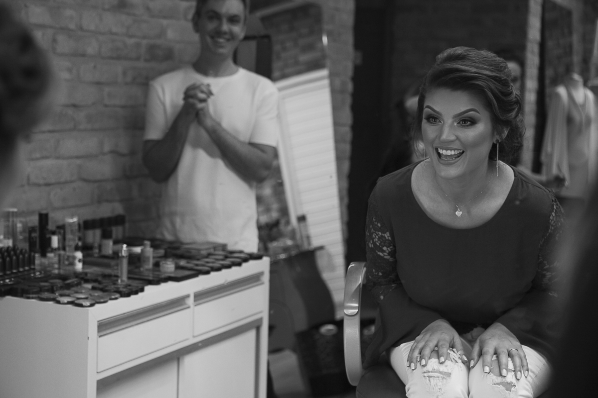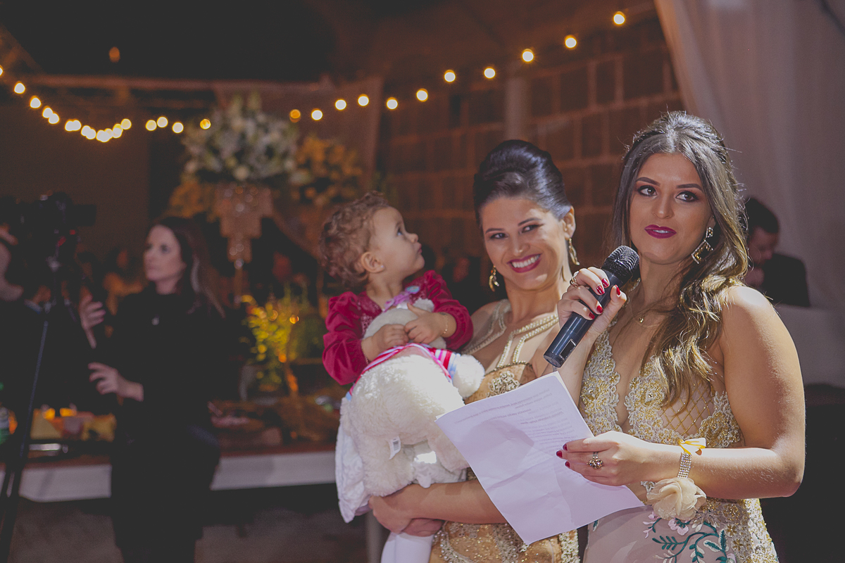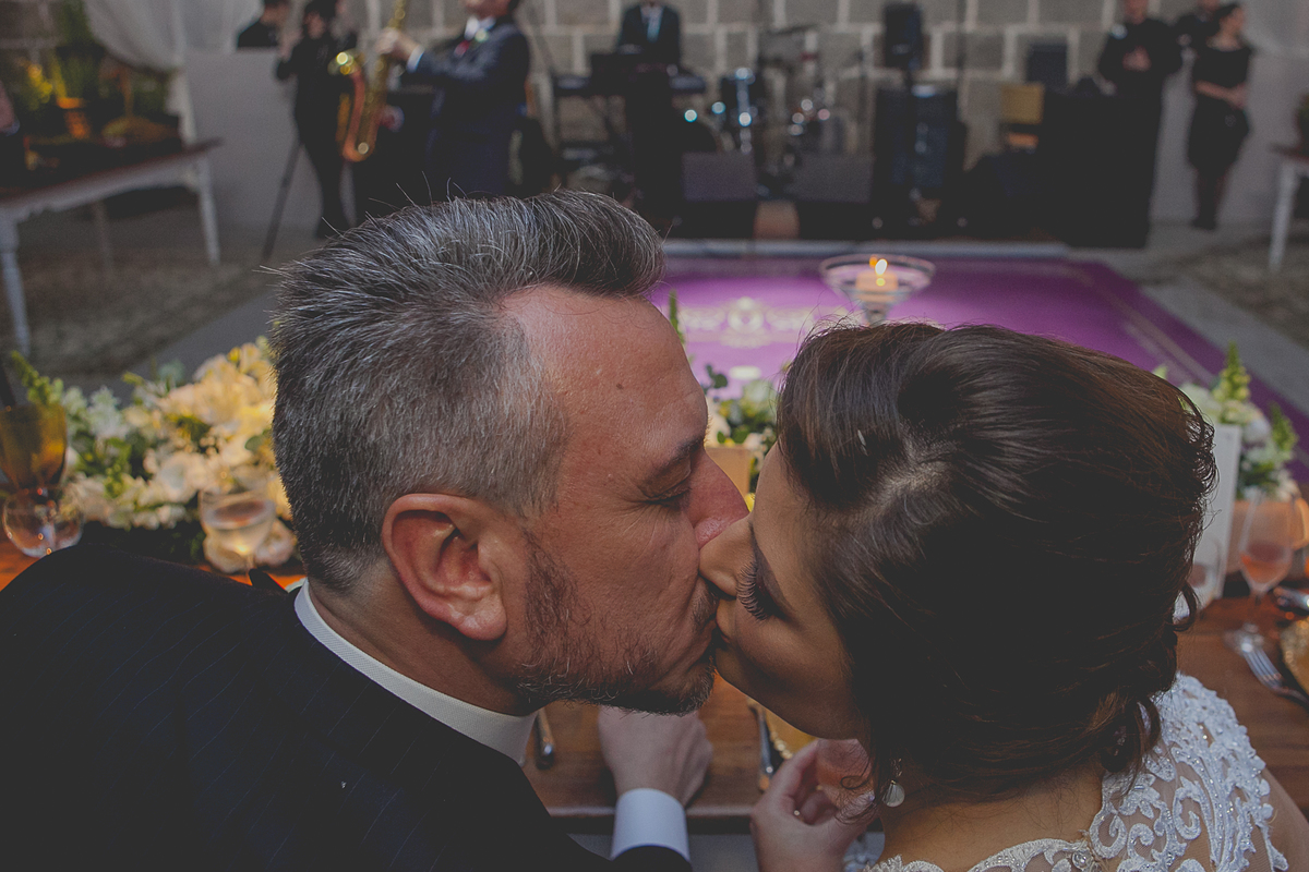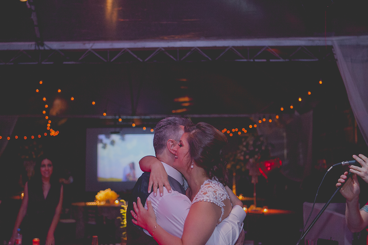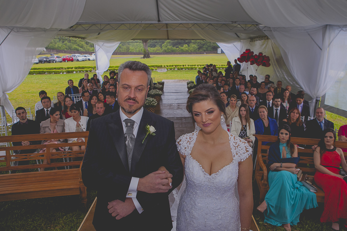 Ao som de sax, do renomado músico Caxiense Adão Cislaghi, que por sinal é o pai da noiva, os momentos de juras e trocas de carinho se tornaram a marca registrada deste lindo casamento.