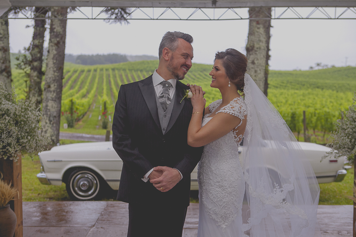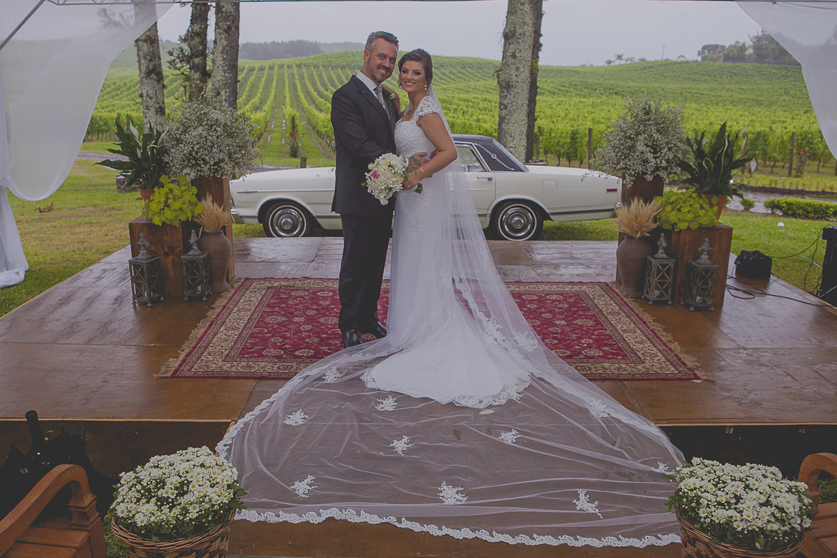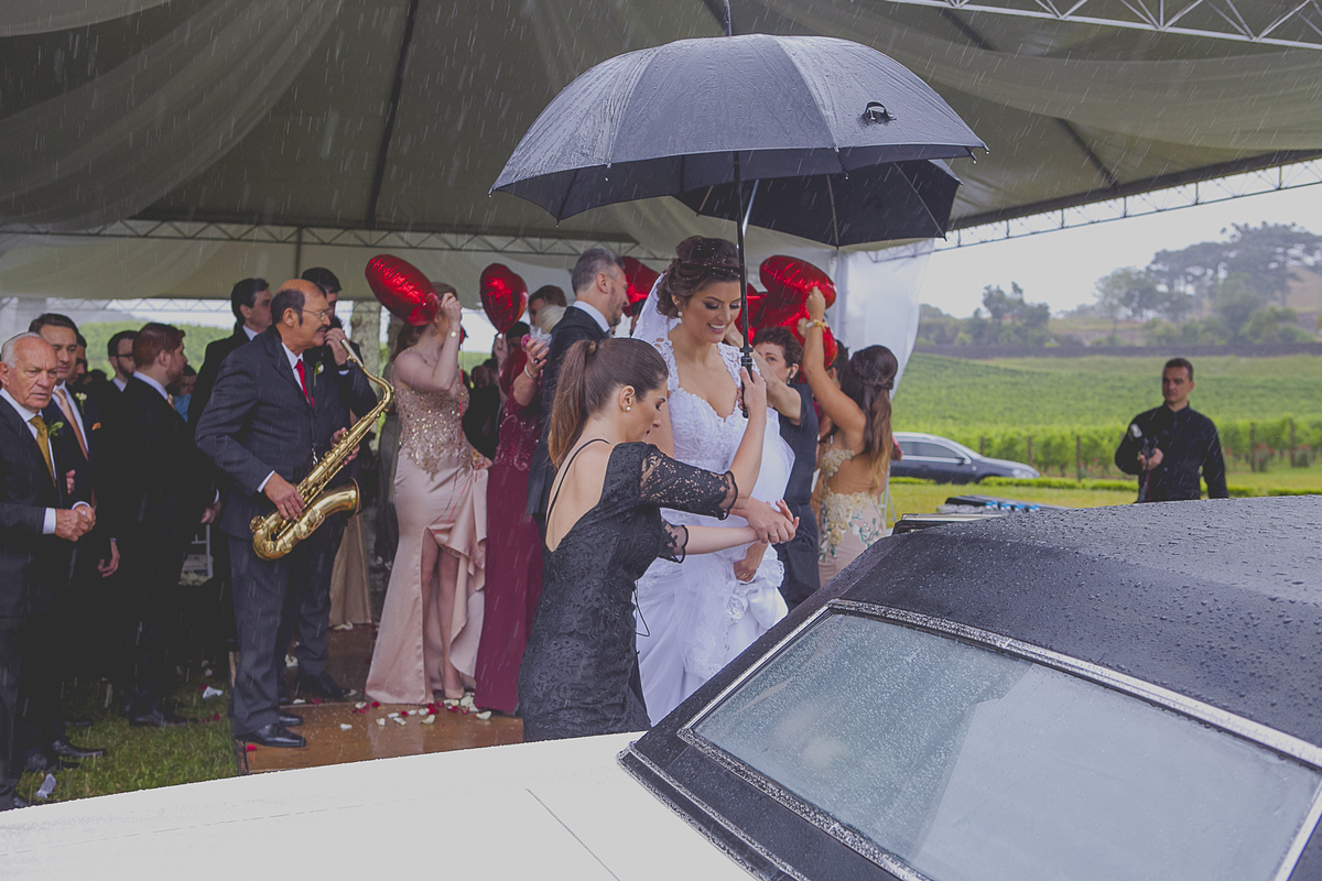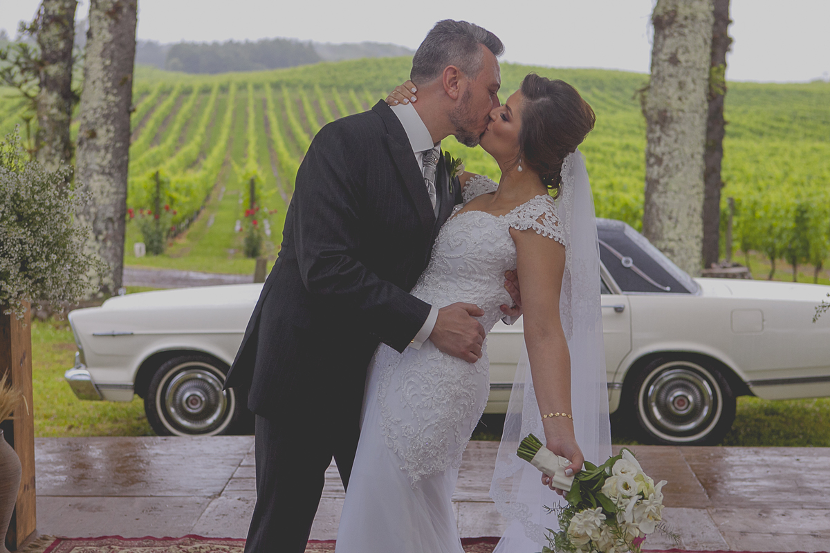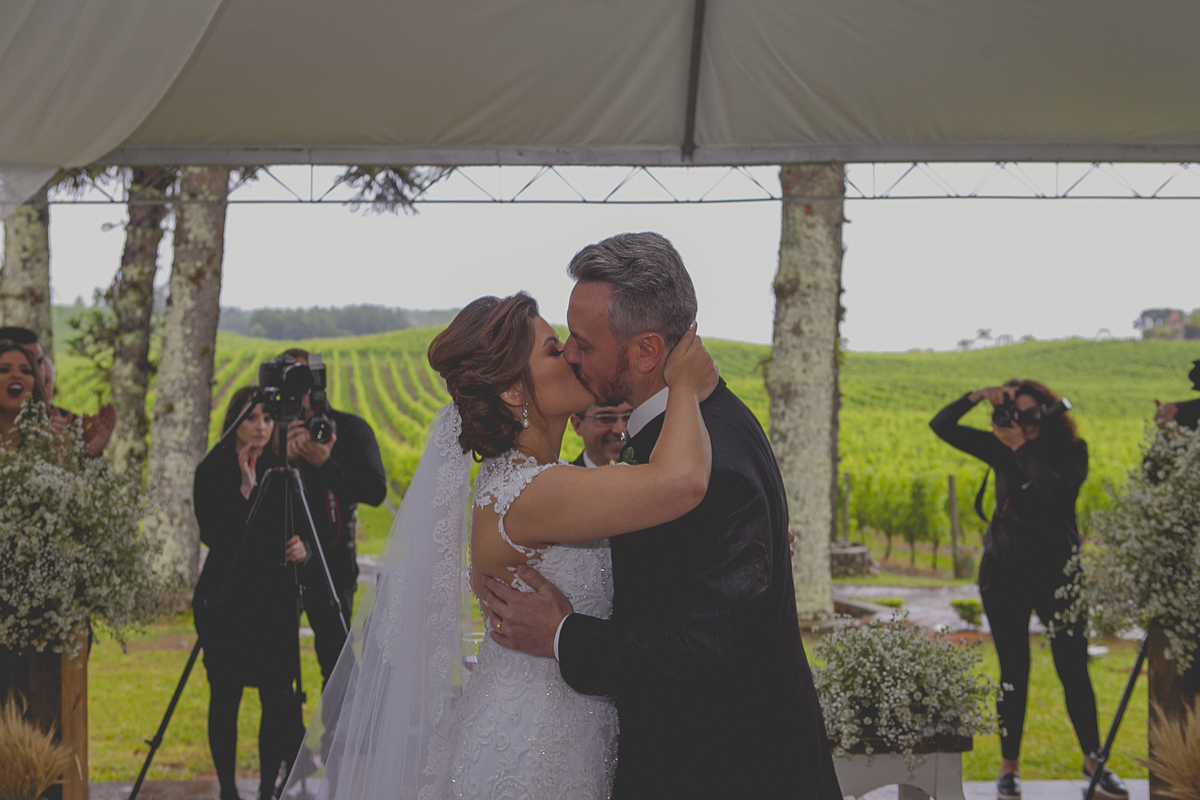 Dizem que quando a noiva come de colher diretamente da panela, no dia do seu casamento irá chover muito, não sei se esse dito popular é verdadeiro, mas, mesmo com a chuva que São Pedro mandou no último dia 25 de novembro, nada impediu que o lindo e encantador enlace da Ângela e do Alexandre ocorresse em meio as lindas parreiras da Vinícola Luiz Argenta, na bela cidade de Flores da Cunha.