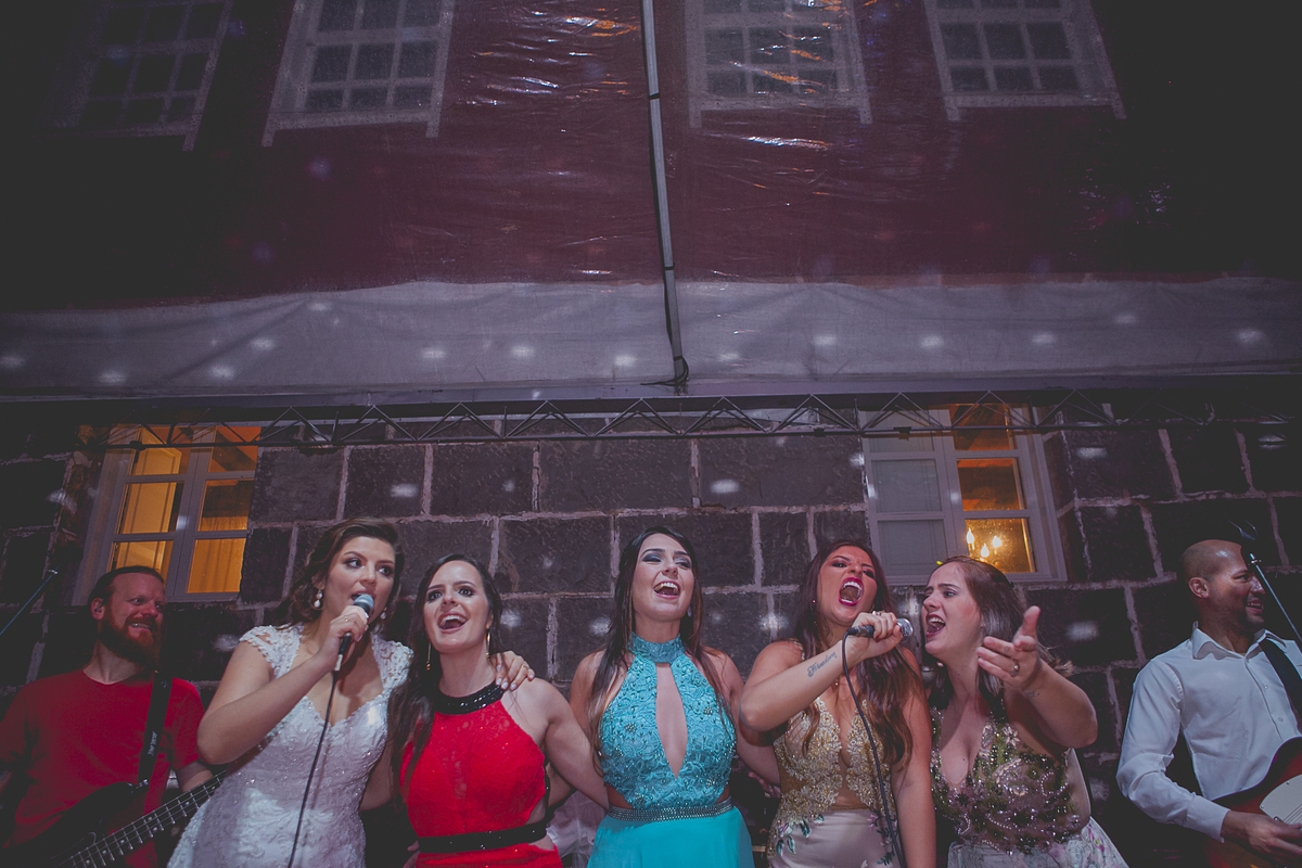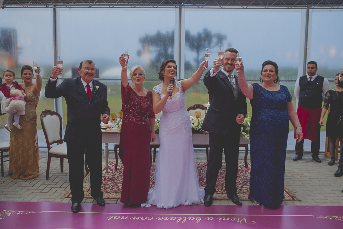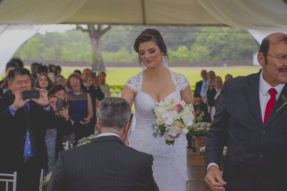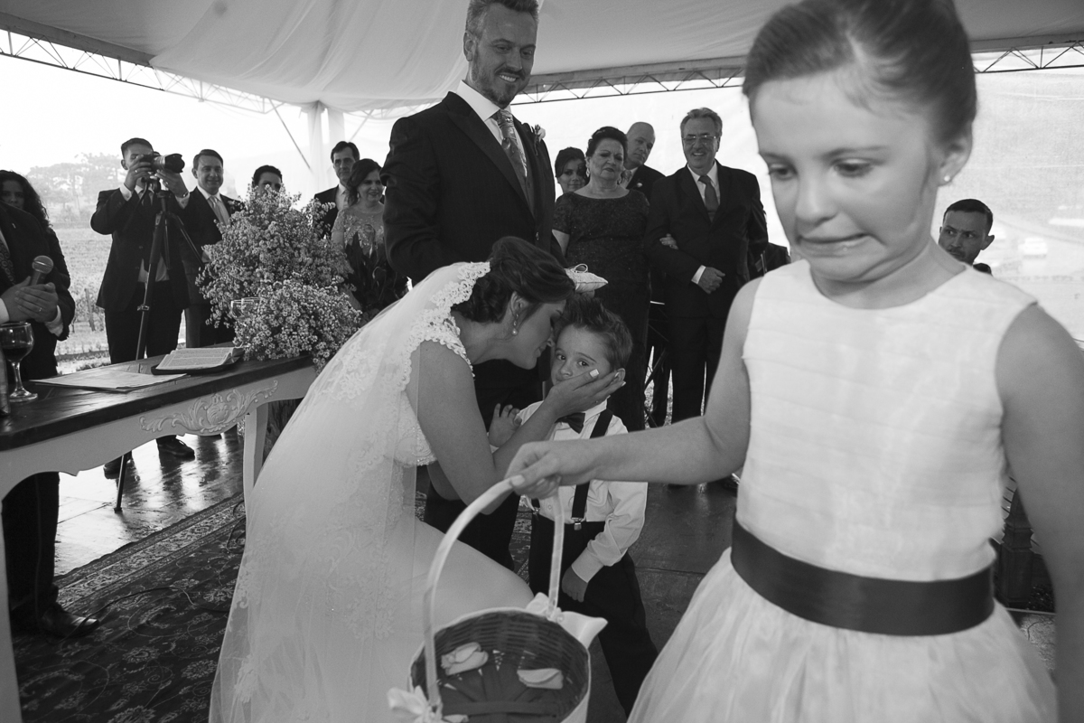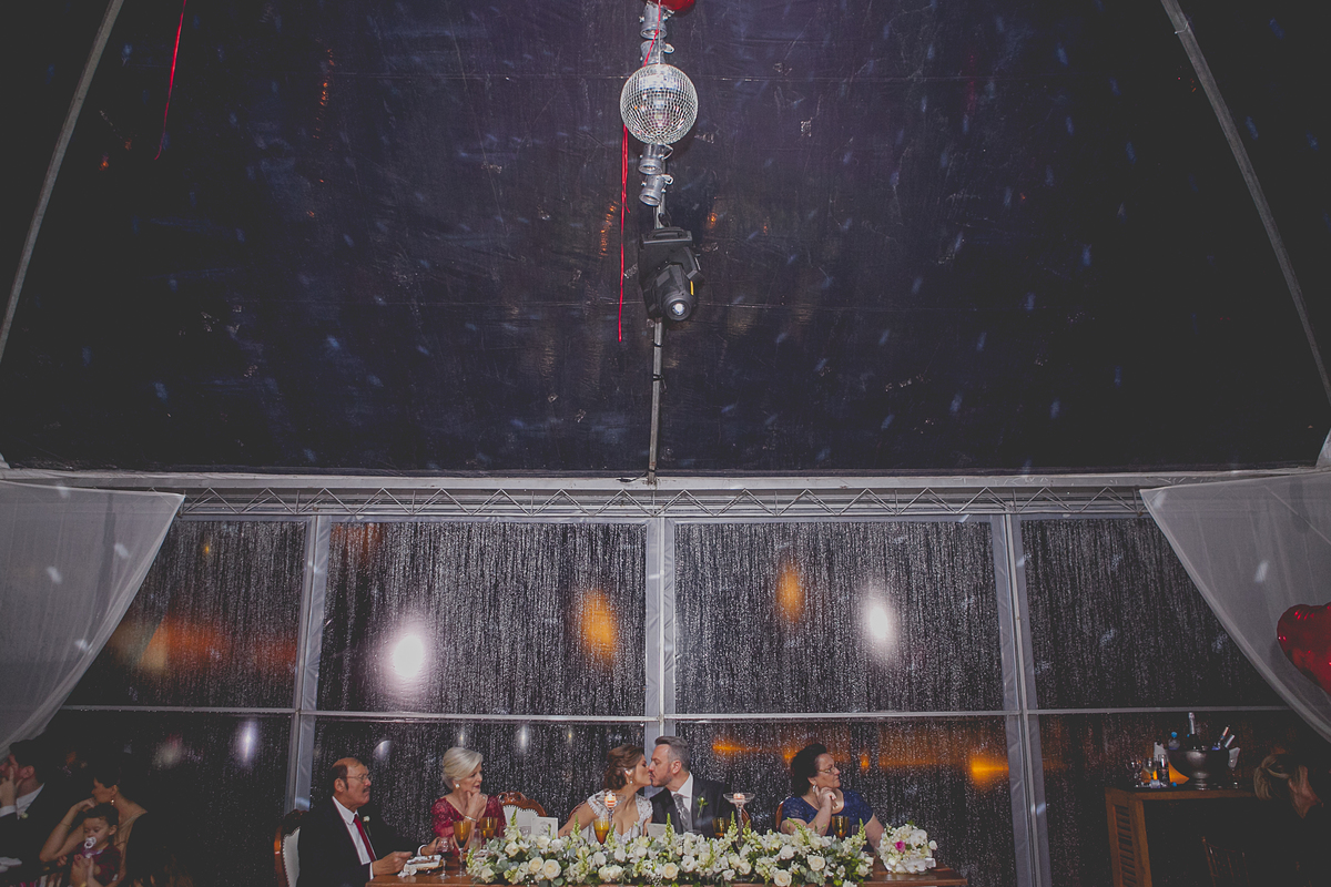 Dizem que quando a noiva come de colher diretamente da panela, no dia do seu casamento irá chover muito, não sei se esse dito popular é verdadeiro, mas, mesmo com a chuva que São Pedro mandou no último dia 25 de novembro, nada impediu que o lindo e encantador enlace da Ângela e do Alexandre ocorresse em meio as lindas parreiras da Vinícola Luiz Argenta, na bela cidade de Flores da Cunha.